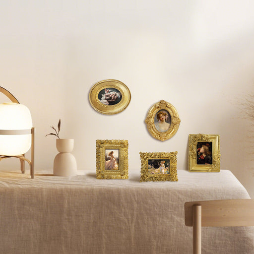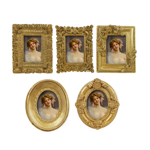 View full detailsVintage Picture Frames, Small Ornate Frames for 1.5x2 inch Wallet Size Photos, 5-Pack Victorian Miniature Photo Display, Antique Style Tabletop Desk Shelf Décor