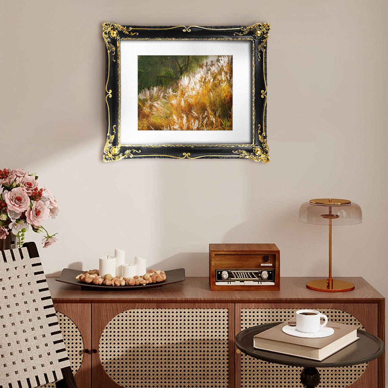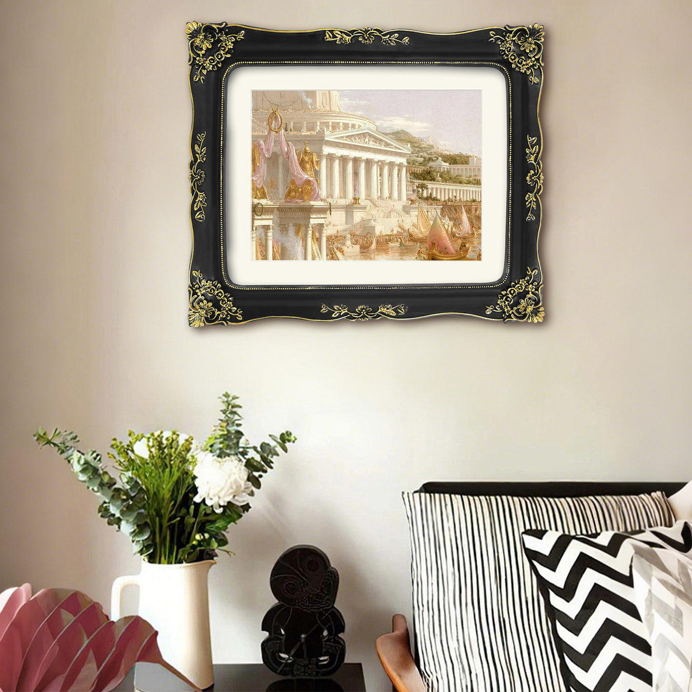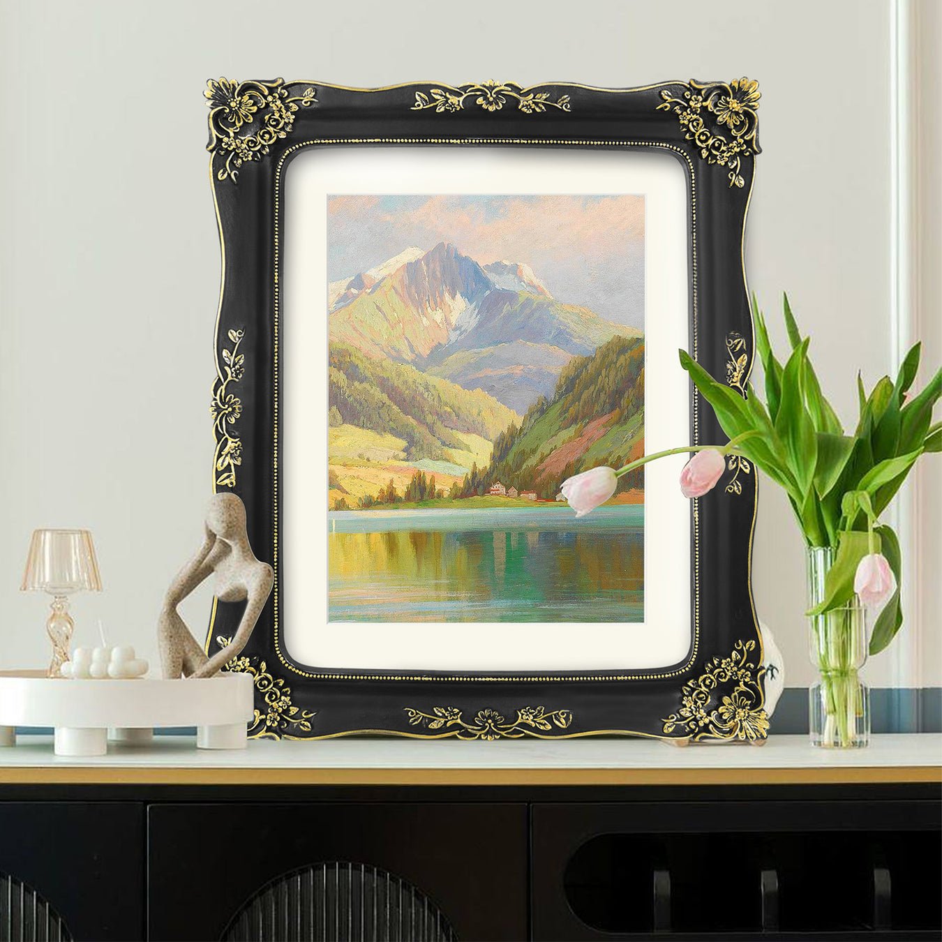 View full detailsBlack Frame with Floral Carvings Around The Border, Vintage Gothic Style Gallery Wall Decor