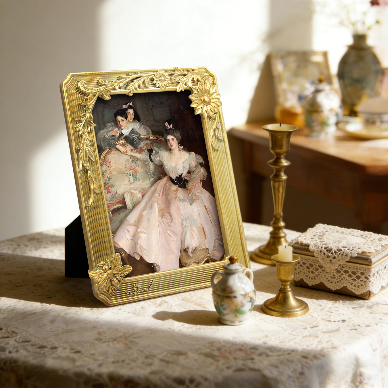 View full detailsVintage Gold Picture Frame 4x4, Hand-Painted Square Floral Decorative Frame for Wall or Tabletop Display
