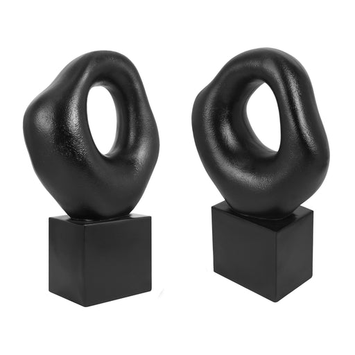 Black Modern Abstract Sculpture, 14.5'' Tall Minimalist Figure Eight Tabletop Statue, Hand-Painted Resin Accent Decor for Home or Office