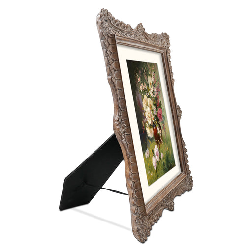 View full details11x14 Picture Frame with Mat, Vintage Picture Frames 11x14 Matted to 8x10, Distressed Wood Frame with Carved Ornate Floral Lattice Patterns