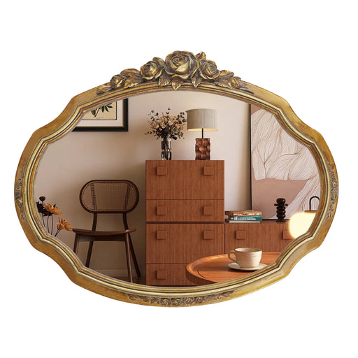 SIMON'S SHOP vintage mirror combines timeless design with modern functionality. This beautifully crafted oval mirror is available in four stunning frame finishes: antique gold, classic black, distressed white, and antique silver, allowing it to complement any interior style. The scroll designed frame, made from high-quality resin, showcases intricate details inspired by classicarchitectural elements, adding a touch of sophistication and charm to any space.