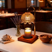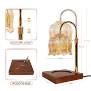 Create a warm and inviting atmosphere with this elegant candle warmer lamp - a perfect mix of beauty, comfort, and practicality. Designed with a natural wood base and flower-designed soft glass shade, it looks lovely in any setting, whether in your living room, bedroom, or office. The adjustable height (8.5''–13'') fits a variety of candles, and the dimmable light lets you set the perfect brightness for any mood. Instead of burning, it gently melts the wax from the top, releasing fragrance evenly and helping your candles last much longer. Safe, flameless, and easy to use, this lamp fills your space with cozy light and soothing scents, and also makes a thoughtful gift for anyone who loves a warm, relaxing home.