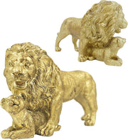 Gold Lion Statue, Lion King and Cub Sculpture, 9'' Wide Safari Themed Animal Figurine for Home Office Décor, Father's Day Housewarmings Birthdays Gifts for Men Parents