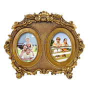 Add a touch of vintage charm to your space with this gold double picture frame. Designed with two oval openings, it beautifully displays two cherished photos side by side, each fitting a 2.5x3.5-inch picture. The vintage picture frame features classic curves and an antique-style gold finish that gives it a warm, timeless look. Whether placed on a bedside table, dresser, or bookshelf, it creates a lovely way to showcase family portraits, baby photos, couple photos, parent-and-child portraits, or before-and-after shots, or special memories. Perfect as a keepsake gift or an elegant accent for your home decor.