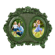 Vintage Double Picture Frame 2.5x3.5, Green Twin Photo Frames Horizontal for Family Couple Portraits, Antique Style Bedside Table Office Desk Décor