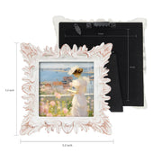 Distressed White Square Picture Frame 4x4, Rustic Hand-Painted Floral Frame for Tabletop or Wall Display