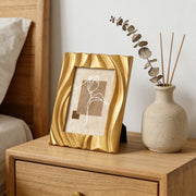 Gold Picture Frame 4x6, Modern Minimalist Photo Frames Tabletop or Wall for Home Décor Gifts, Hand Carved Wave Pattern Frame with 3D Textured Design