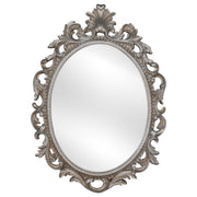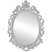 Enhance your space with this vintage oval wall mirror, measuring 13"x18". Its classic scroll design frame makes it an elegant focal point for any room. Perfect for adding depth and character, this vintage mirror combines timeless style with functional wall decor that complements traditional interiors.