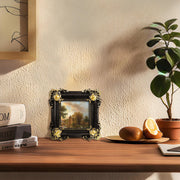 Black Picture Frame for 3x3 Image, Rustic Floral Frame for Tabletop or Wall Display, Square Small Photo Frame