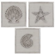 Indulge in the soothing ambiance of the ocean with our contemporary wall art set and bring the timeless allure of the beach into your home. Let the graceful lines and organic textures of seashells, starfish, and nautilus shells inspire a sense of relaxation and serenity in your living space.